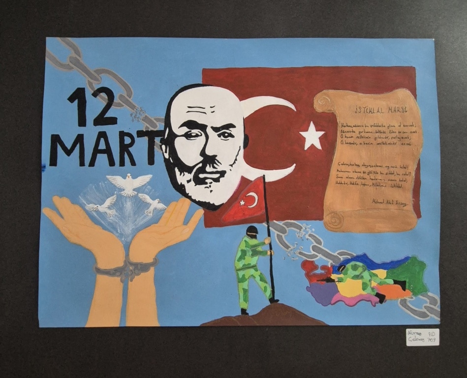 "12 Mart İstiklal Marşının Kabulü ve Mehmet Akif Ersoy´u Anma Günü" Resim Sergimizde emeği geçen öğrencilerimize ve Görsel Sanatlar öğretmenimiz Osman GÜROCAK'a teşekkür ederiz.